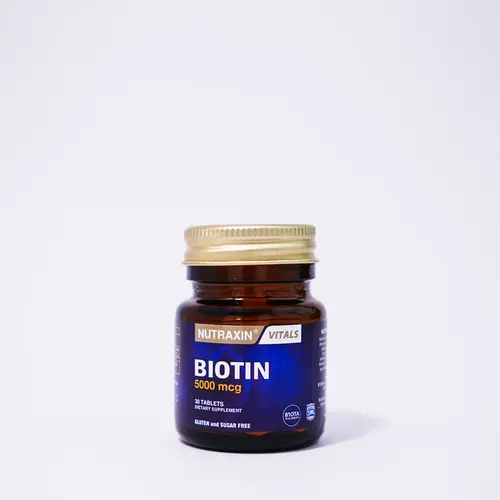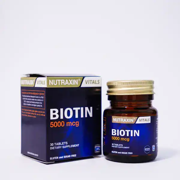 بیوتین نوتراکسین ۵۰۰۰ (Nutraxin Biotin 5000 mcg) یکی از محبوب‌ترین مکمل‌های تقویتی برای زیبایی و سلامت است. این مکمل اصل  با دوز بالا، به شما کمک می‌کند تا ریزش مو را کاهش دهید، ناخن‌هایی محکم‌تر داشته باشید و پوستی شفاف‌تر تجربه کنید.